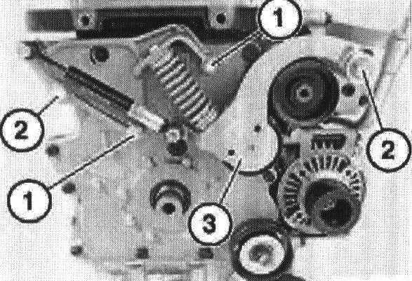 Remove retaining bolts (1) and (2).