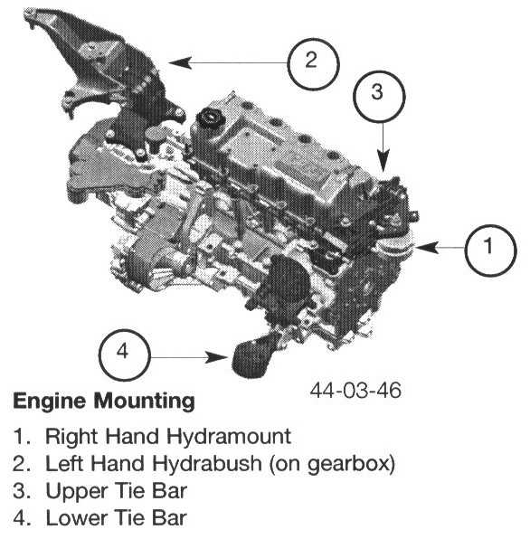 Brackets, bolt and mount rates vary with engine/gearbox combinations. The hydra-mount and hydra bush carry the mass of the engine. They control the vertical and lateral movements of the engine. These movements are generated by the engine itself and through road inputs from the suspension. The tie bars control torque reaction. This is the natural fore-aft movement of the engine during acceleration and deceleration.