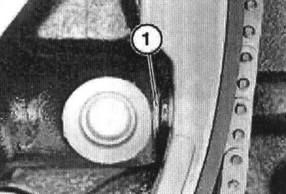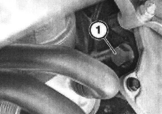 Install the timing chain tensioner (1) into its housing and tighten.