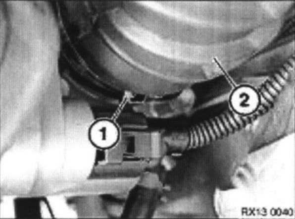 Unlock line (1) of tank venting valve on throttle assembly and disconnect.