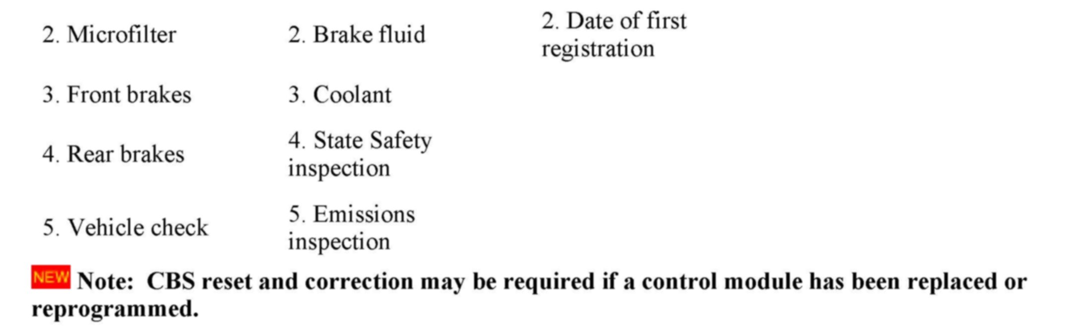 ^ Microfilter replacement (dependent on vehicle model and CBS version)