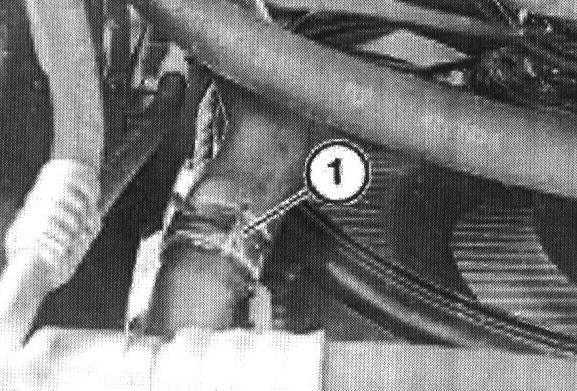 Remove bottom hose connection on radiator (1).
