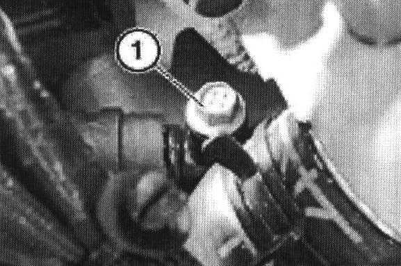 Release vent screw (1) in top coolant hose.