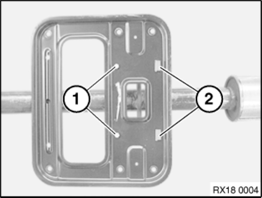 Release screws (1) and remove reinforcement plate.