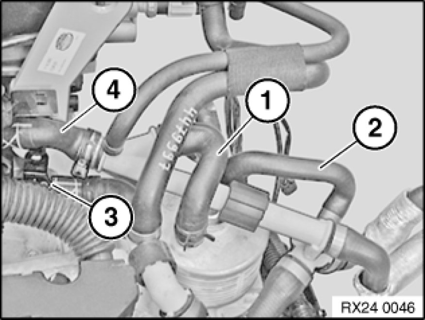 Disconnect coolant hoses (3/4) from coolant pipe.