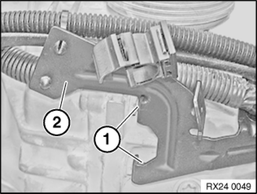 Release nuts (1) and remove bracket (2) with wiring harness.