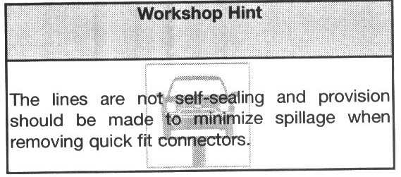 The master cylinder is located on the pedal box and is supported by 2 mounting points. The lines, which connect into the clutch slave and master cylinders, are quick release connectors. The brake master cylinder reservoir supplies fluid to the clutch master cylinder.