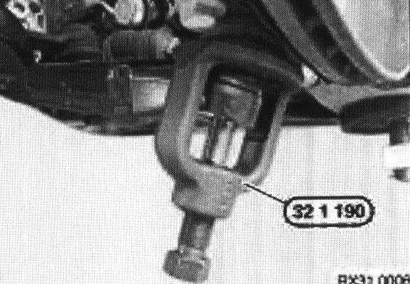Release nut and use special tool 32 1 190 to detach control arm from steering knuckle.
