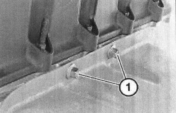 Remove oxygen sensor harness from clip (2) and remove heat shield.