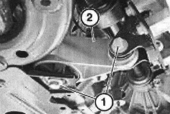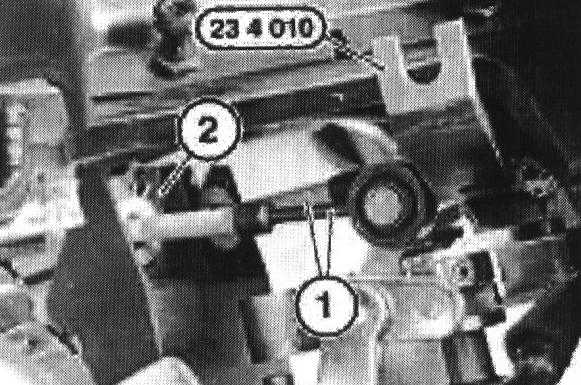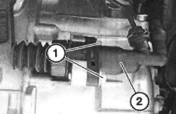 Remove clutch slave cylinder retaining bolts (1) and remove clutch slave cylinder (2) from gearbox.