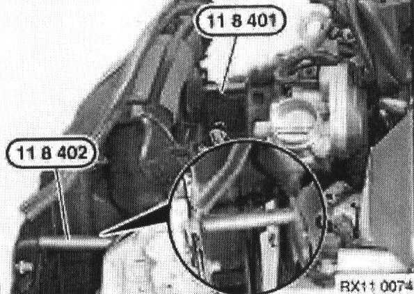 Slacken modular front end and fit special tools 11 8 401 and 11 8 402