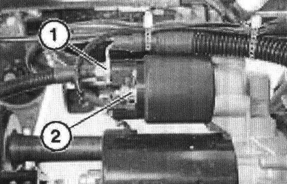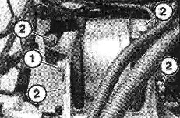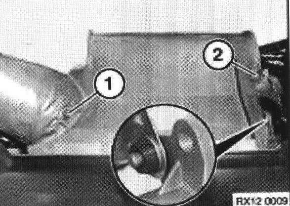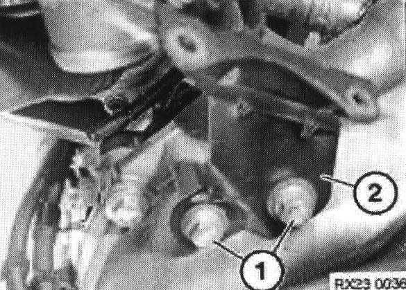 Remove support bracket fixing bolts (1) and remove bracket (2)