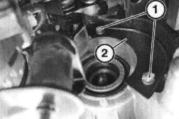 Remove closing plate retaining bolts (1) and remove closing plate (2).