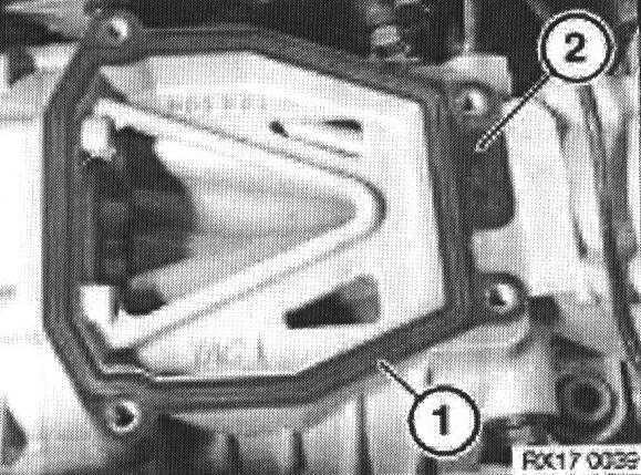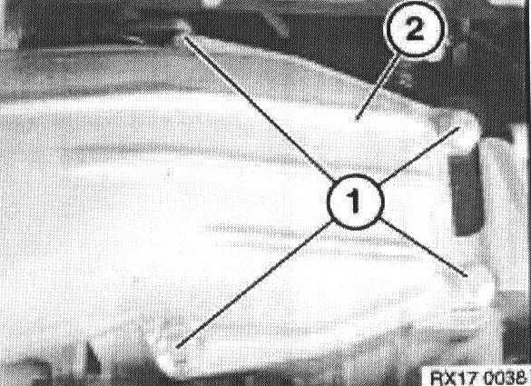 Remove bolts (1) and remove supercharger outlet pipe (2).
