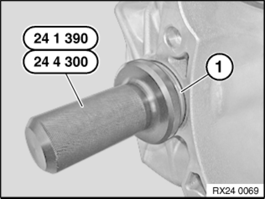 Drive radial shaft seal (1) firmly home with special tool 24 4 300.