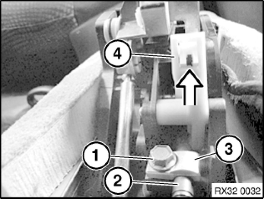 Unscrew bolt (1). The cable (2) must be able to move slightly in the mounting (3).