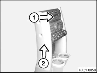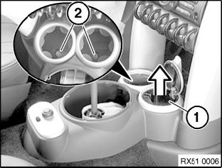 To remove the ashtray (1) (depending on equipment specification), open the ashtray lid and lift out the ashtray housing.