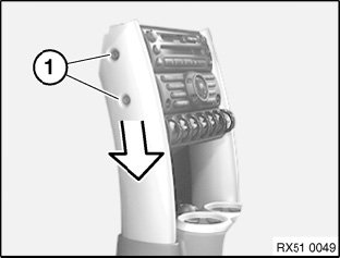 Release screws (1) securing both cover trims of the center console to the instrument panel.