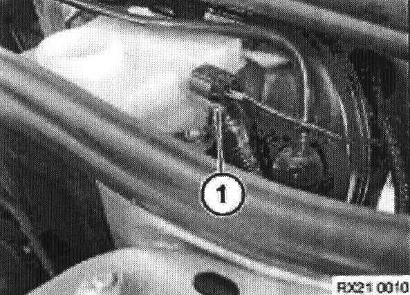 Remove/lower brake fluid level to the underside of the clutch master cylinder feed pipe (1).