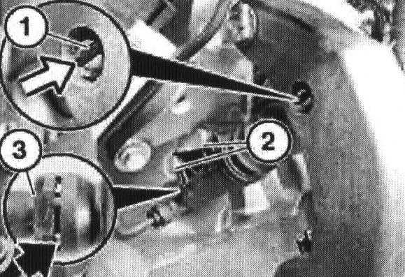 Remove clutch master cylinder retaining bolts (2) and remove clutch outlet pipe (3).