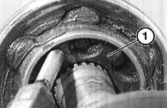 Position seal to joint and shaft and ensure that ribs of seal locates in grooves (1).