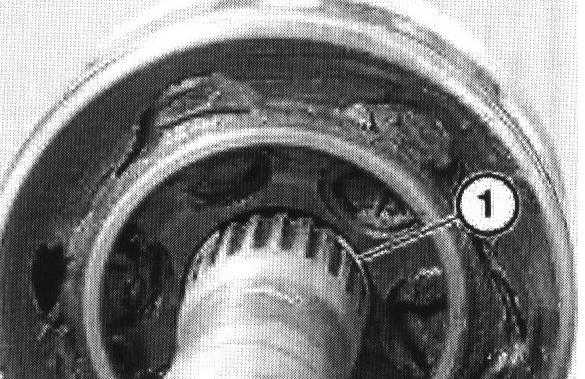 Pack joint with grease and fit to shaft, ensure joint contacts new ring on shaft. Press in ring (1) to groove, tap join onto shaft.