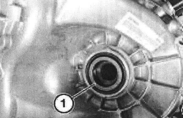 Use a screwdriver to lever out radial seal (1) from transmission housing.