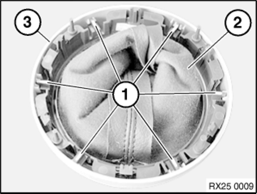 Release clips (1) and release dust sleeve (2) from frame surround (3).