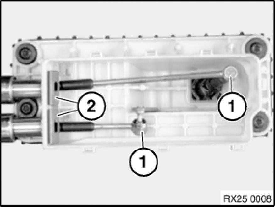 Remove clips (2) and pull shift cable assemblies out of housing.