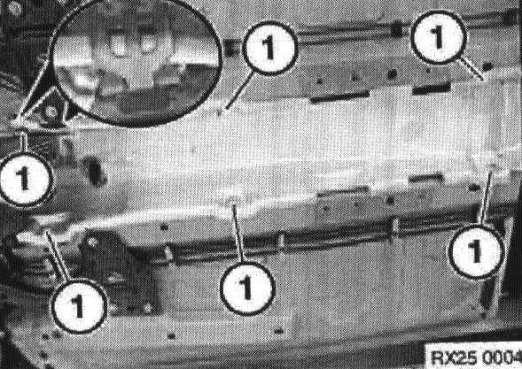 Remove center heat shield fixings (1).