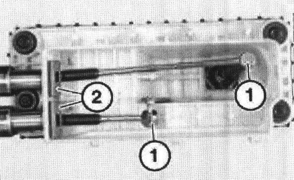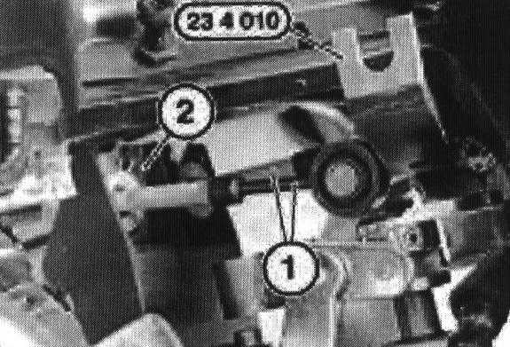 Remove clips from gearshift cable housing locations (1) and release gearshift cables (2) from ball joints.