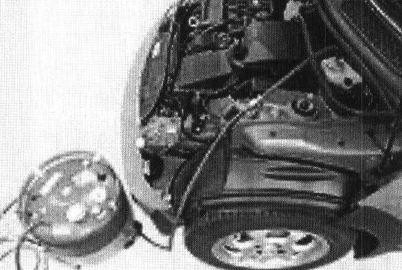 Connect bleeder hose and bottle to bleed valve on rear right brake caliper.