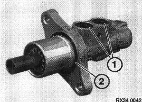 When inserting master brake cylinder into brake booster, make sure pressure rod of brake booster and pressure rod of master brake cylinder are in one plane.