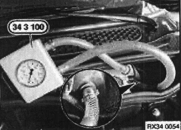 - Pull hose off connection and release from clip. Install vacuum tester 34 3 100 between connection and vacuum hose on non-return valve.