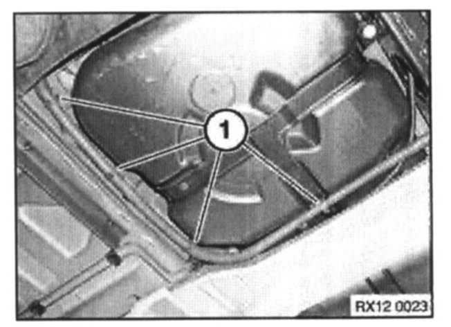Remove scrivets (4) securing heat shield to rear bumper carrier.