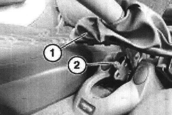 Slacken self-locking nut (2) until tension is completely released on Bowden cable.