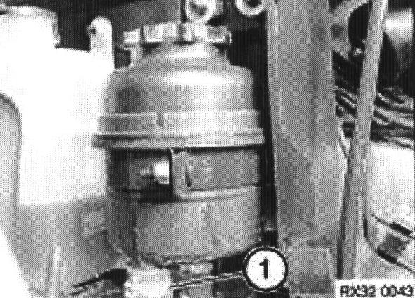 Release clip holding pipe to steering pump and remove pipe. Catch any oil in suitable container.