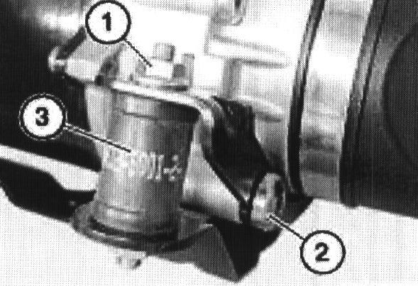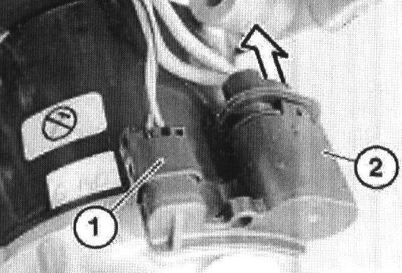 Remove nuts (1) and bolts (2) holding bracket to pump and fit to new pump.