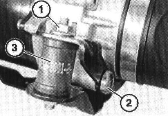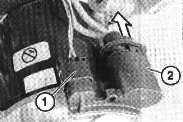 Remove nuts (1) and bolts (2) holding bracket to pump and fit a new pump.