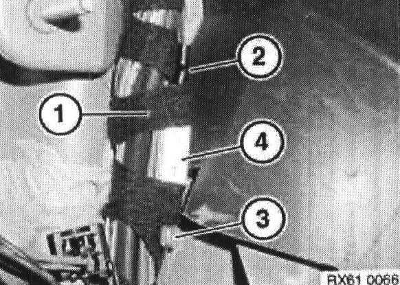 Release harness tape (1) to access diode (4) and connectors (2 and 3).