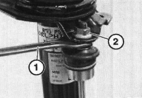 Release nut (1) - grip with open end wrench and detach stabilizer link.