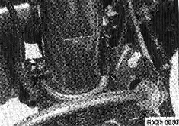 - Feed in spring strut and push steering stub upwards until it reaches the limit position.