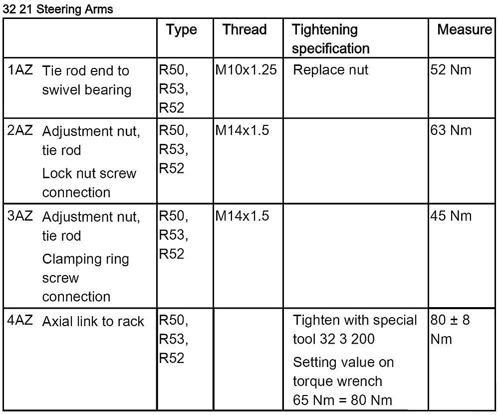 - Tightening Torque, 32 21 1AZ.