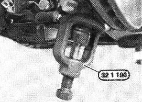 Release nut and press out wishbone from the steering stub with special tool 32 1 190.