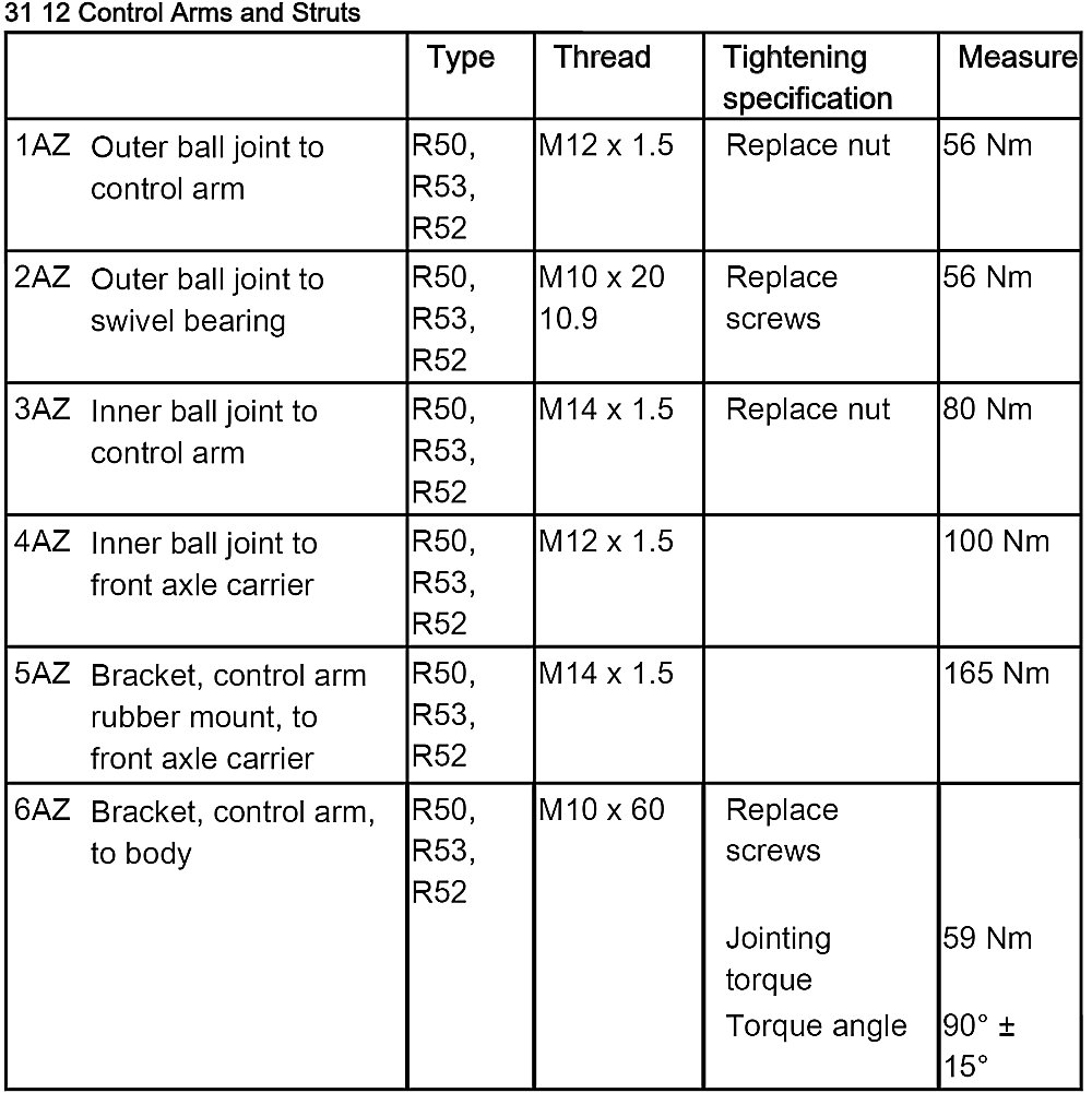- Tightening torque, 31 12 1AZ.