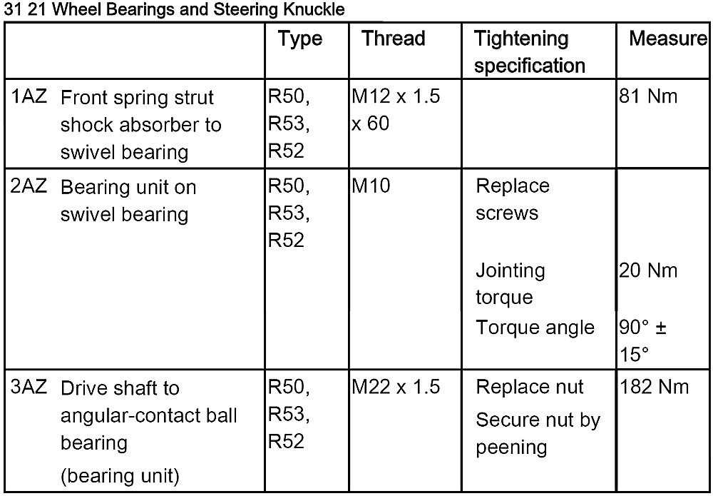- Tightening Torque, 31 31 1AZ.