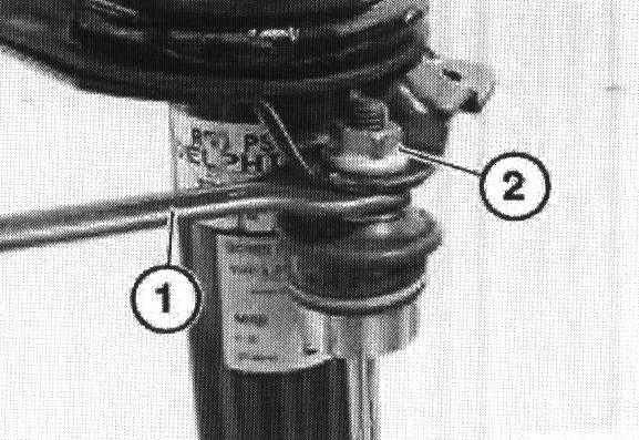 Release nut (1) while supporting the spring strut and then remove the spring strut.