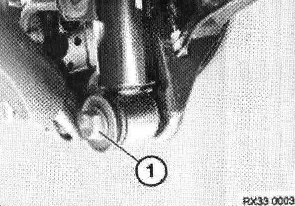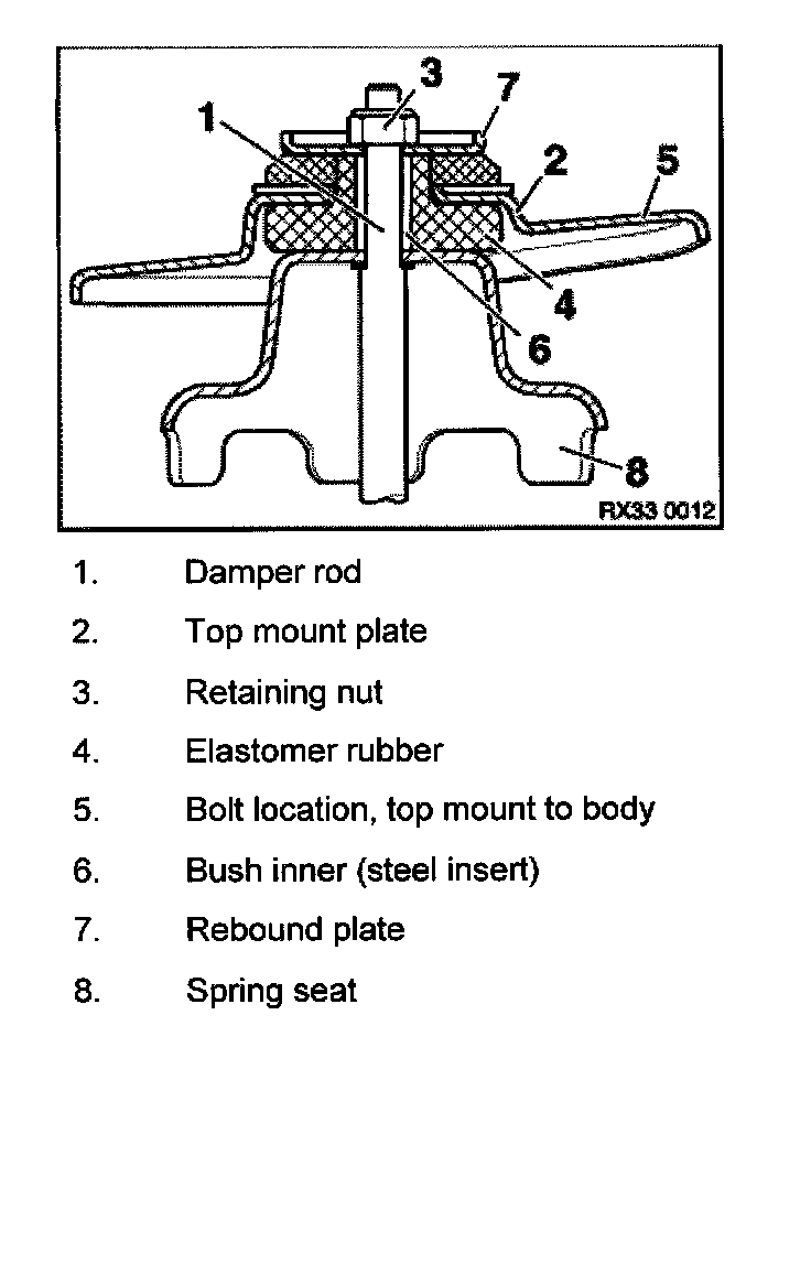 Compress spring so there is no tension on mounts and remove top mount fixing nut (1).