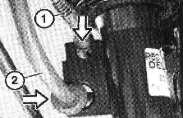Caution: Ensure ABS sensor grommet (1) and brake hose grommet (2) are refitted correctly on installation.