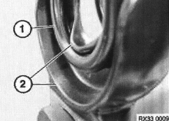 Warning: Spring retainers must each be inserted from chamfer (1) of special tools 31 3 341 . Locking pins must be felt and heard snapping into place.